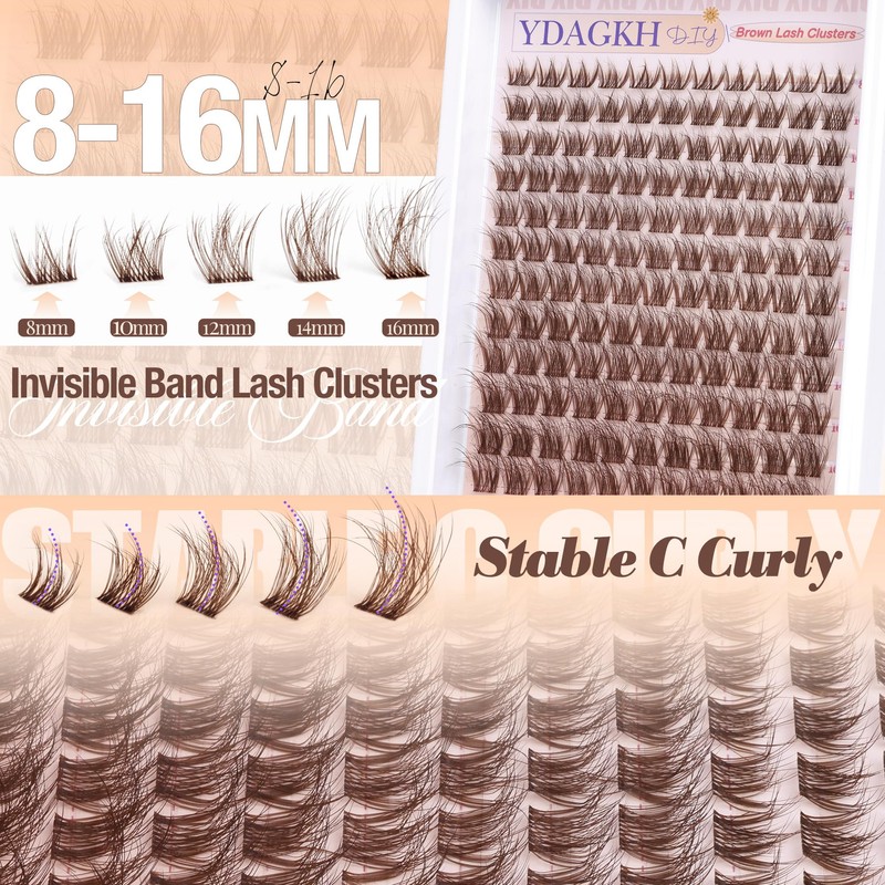 - - Brown Lash Extension More Natural: Achieve a softer, more natural look with our brown eyelash clusters, perfect for everyday wear. The c curly design lifts and defines your eyes, adding a subtle yet captivating allure. Achieve a dreamy, wide-eyed look in minutes—no salon needed!