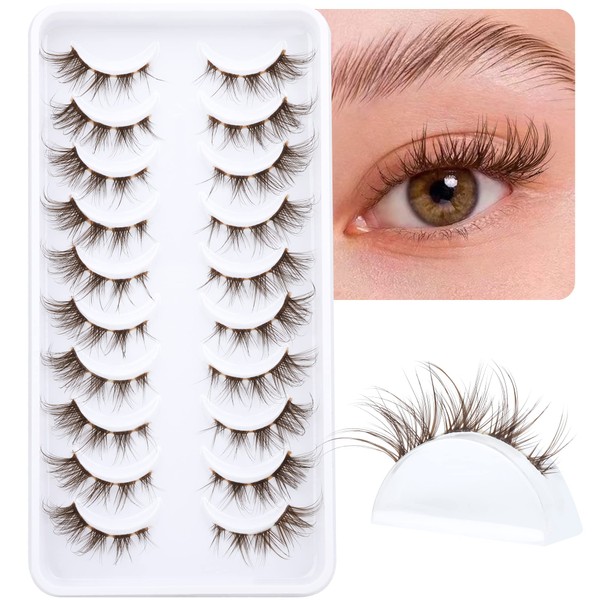- Brown Lashes Natural Look False Eyelashes Wispy Strip Eyelashes Cat Eye Lashes Brown Fake Eyelashes 10 Pairs Fuzzy Eyelash with Clear Lash Bands