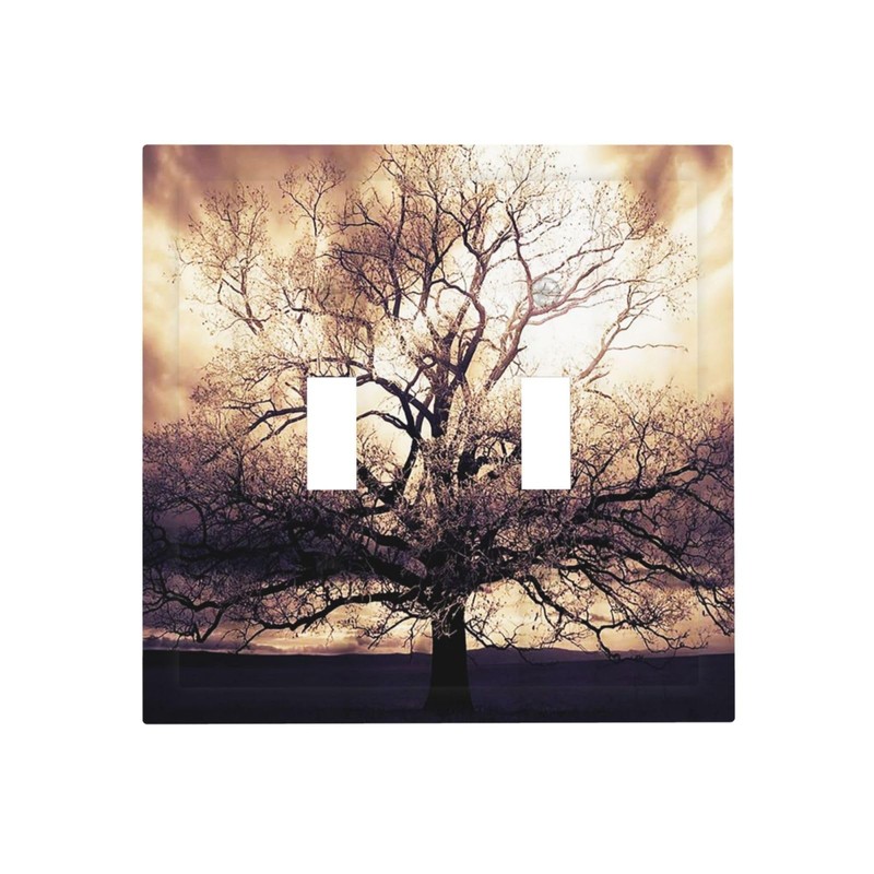 Brown Tree 2 Gang Toggle Light Switch Cover Double Toggle Decorative Wall Plates Cover Electrical Switchplate Faceplate for Home Decor