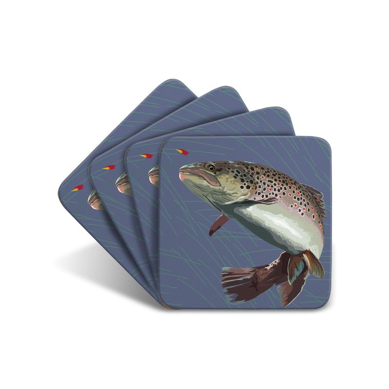 Brown Trout - Set of 4 Coasters - Leslie Gerry Animal Gifts