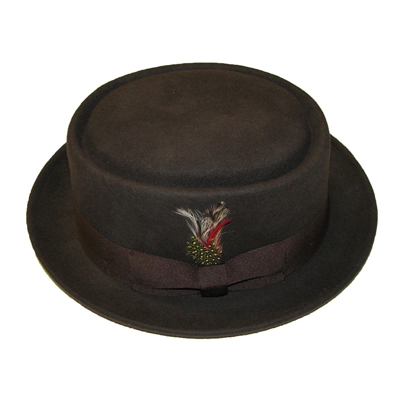 - BROWN Unisex Superb Foldable Pork Pie Trilby Hat With Matching Band AND Removable Feather 100% Wool Hand Made