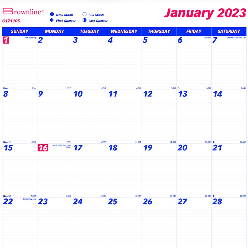 Brownline 2023 Monthly Wall Calendar, 12 Months, January to December, Twin-Wire Binding, 20" x 30" (C171105-23)