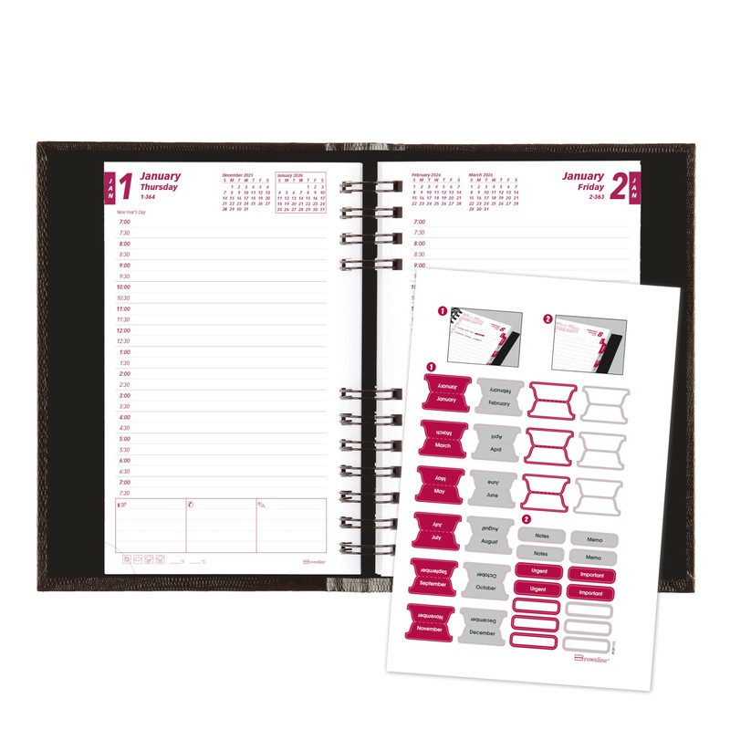 - VERSATILE | The Brownline CoilPro Daily/Monthly Appointment Book and Planner spans 12 months, January to December 2026. Day-per-page, half-hour appointment schedule from 7:00 a.m. to 7:30 p.m. for the full week. Monthly planner before each month. Reminder blocks for notes and calls. English.