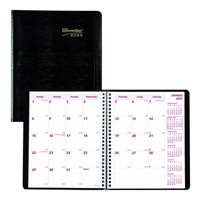 Brownline Essential Collection 14-Month Ruled Monthly Planner, 8.88 x 7.13, Black Cover, 14-Month (Dec to Jan): 2022 to 2024