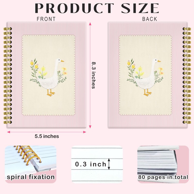 - Size and Features: Sized at 5.5 x 8.5 inches, the notebook includes a firm outer cover that helps keep your pages in place. Inside, the pages provide a smooth surface for writing. The spiral binding allows for easy flipping and a flat layout while in use.