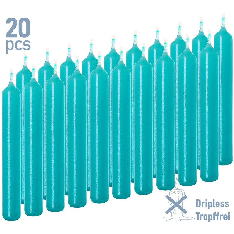 BRUBAKER Pack of 20 Birthday Candles Turquoise 9.5 cm - Small Tapered Candles for Birthday, Magic, Rituals or Party Decoration - Decorative Candles with 1.25 cm Diameter - Taper Candles