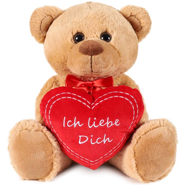 Brubaker Teddy Plush Bear with Heart Red – I Love You – 35 cm – Teddy Bear Plush Cuddly Toy – Brown, Light Brown