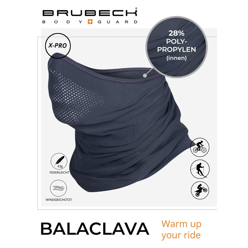 BRUBECK X-Pro KM10430 Half Balaclava for Men and Women, Temperature-Regulating, Face Mask, Functional Clothing, Breathable, grey, s-m