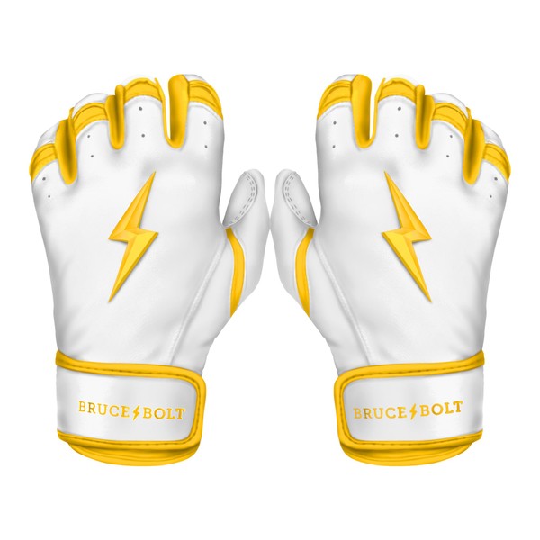 - HIGHEST QUALITY, MOST DURABLE BATTING GLOVE IN BASEBALL: Each pair of BRUCE BOLT batting gloves are handmade by skilled craftsmen using only the highest quality 0.9mm Cabretta leather and stitching techniques which makes our gloves buttery soft but more durable than any other glove on the market.