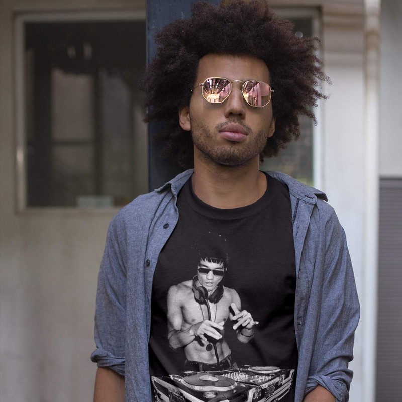 Bruce Lee DJ Dragon Classic Black T-Shirt, Size Small