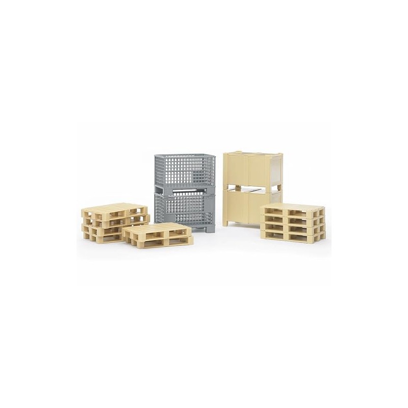 The Pro Series logistics set consists of two mesh boxes, two boxes with lids and ten pallets. The set perfectly complements the transport and logistics vehicles, e. g. container lorries of the Pro series. The whole area of logistics can be re-enacted and experienced with the logistics set, the container lorries and the fork-lift trucks. New 2013; From the Manufacturer; The Pro Series logistics set consists of two mesh boxes, two boxes with lids and ten pallets. The set perfectly complements the transport and logistics vehicles, e. g. container lorries of the Pro series. The whole area of logistics can be re-enacted and experienced with the logistics set, the container lorries and the fork-lift trucks.