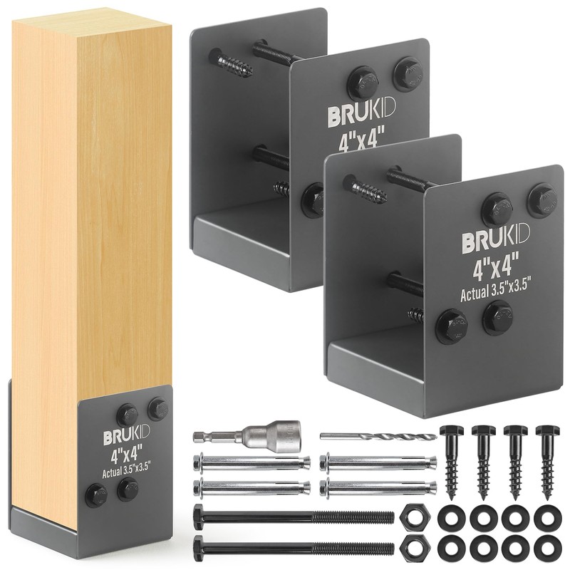 - SIZE: Post Base fits standard 4"x4" (Actual: 3.5"x3.5") Wood Post; 3.75" L x 3.52" W x 5.2" H, Qty:2pack