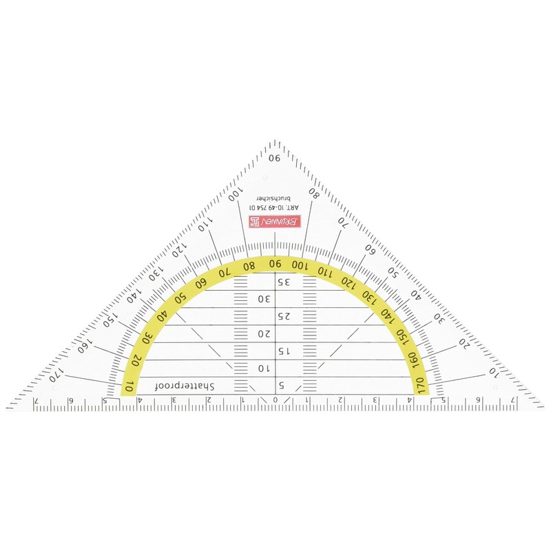 Brunnen 104975401 Geometry Triangle for School and Office, 16 cm, with Handle, Shatter-Proof, Transparent