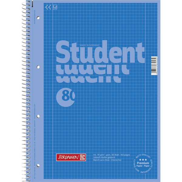 Brunnen 1067928190 Notebook, Student Notepad (Square, A4, line: 28, 90 g/m², 80 Sheets) Blue