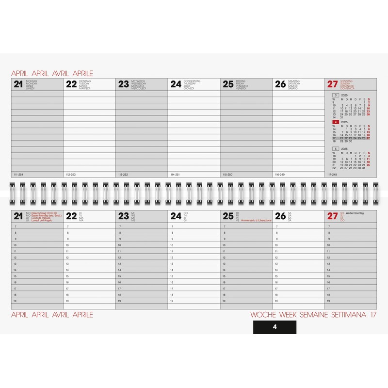 - 2 pages monthly plan current year, 2 pages following year, holiday dates Germany