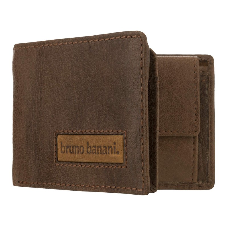 - The bruno banani wallet stands out thanks to its small format with which it can easily and comfortably find space in any trouser pocket. The grained leather gives the wallet a stylish look. Dimensions: 10 x 7 x 2 cm
