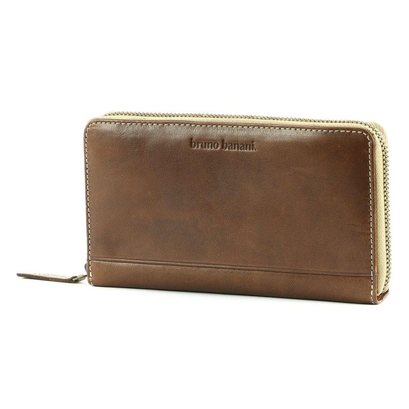 - This Bruno Banani wallet is a beautiful centrepiece and should not be missing in your everyday life. In high-quality workmanship, the spacious wallet impresses with a great leather. Here fuses functionality with beauty. Bruno banani knows what women are appealing. Dimensions: 18 x 10 x 2 cm