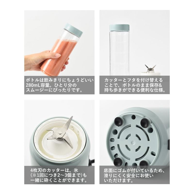 Bruno BOE073-BL Mini Blender Bottle, Breaks Ice, Great Gift, Compact, 9.5 fl oz (280 ml), Stylish, Cute, Blue