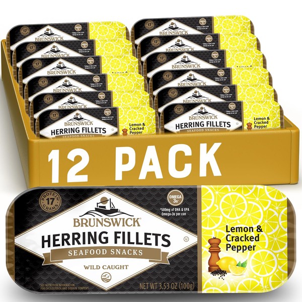 Brunswick Herring Fillets in Lemon & Cracked Pepper, 3.53 Oz (Pack of 12) - 15g Protein per Serving - Gluten Free, Keto Friendly - Great for Pasta & Seafood Recipes