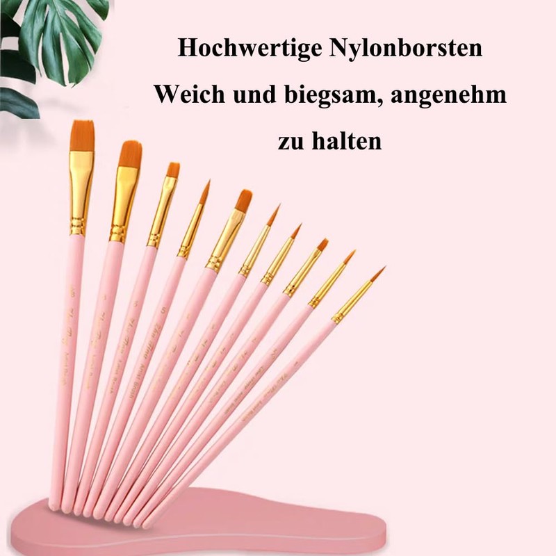 Brush Set, 10 Pieces High-Quality Brushes with Wooden Handles, Brush Set Children Various Sizes for Artists, Adults and Children Painting Lovers, Beginners, Pink