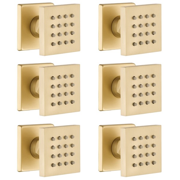 Brushed Gold 6 Pack HOMEDEC 2inch Round Brass Square Massage Shower Body Sprayer Jets