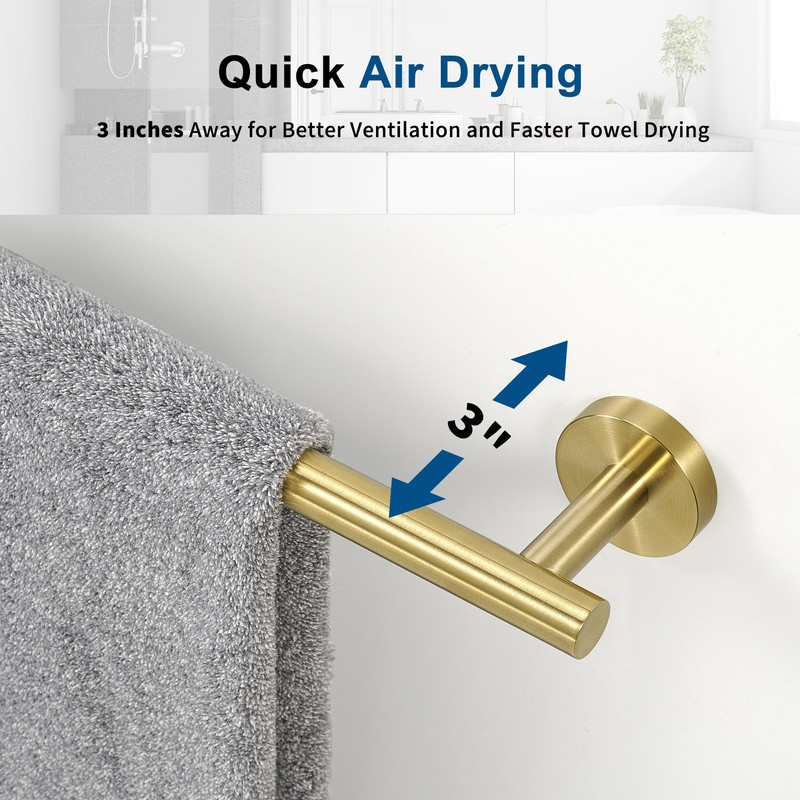 • 【Beautiful Appearance】Bathroom Towel holder features a contemporary style that effortlessly complements any interior decor.Simple round silhouette and unique brushed gold design surface,simple and fashionable,concealed screw makes the product look more beautiful,unique round shape design without sharp edges avoids scratching the skin, making it safer for you and your family.