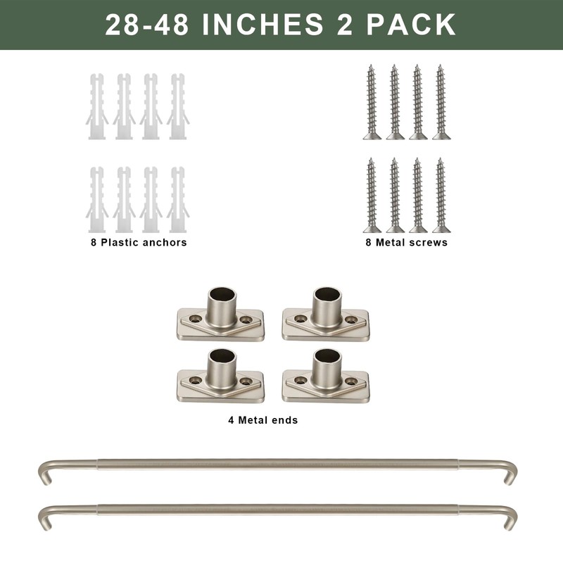 - TELESCOPIC STRUCTURE: The telescoping rod can extend from 28 to 48 inch to fit your window, then tighten set screws to lock the rod in place. The brackets are made of high-quality metal, which can hold up to 30 lbs of weight easily and safely. Please choose our curtain rods to decorate your home.