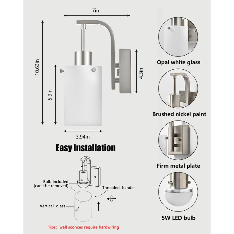 Enhance your space with this set of 2 elegant wall sconces that blend functionality with style. Crafted with a sturdy metal base and opal white glass shade, these wall sconces are designed to resist oxidation and fading, ensuring lasting beauty in your home.