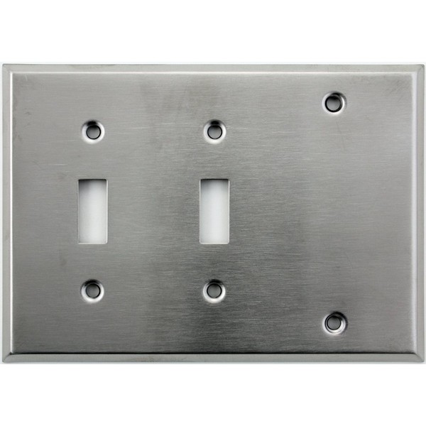 Brushed Satin Stainless Steel 3 Gang Wall Plate - 2 Toggle 1 One Blank