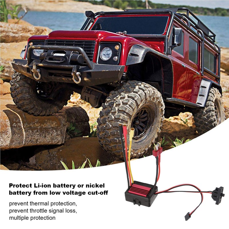 - ● GOOD PERFORMANCE: Improved throttle response, excellent acceleration, powerful braking and throttle linearity provide by this product. Meanwhile, Brushless ESC is easy to install and detach, simple , even beginner can also fast learn how to use it.
