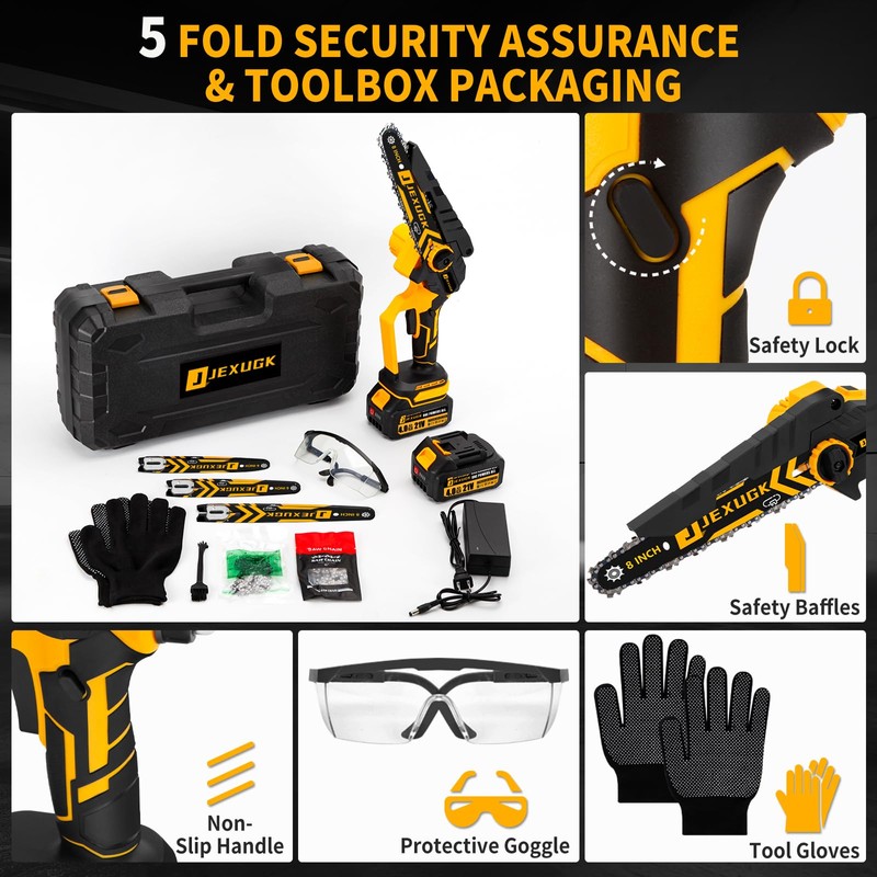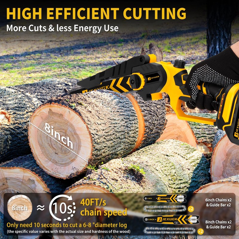 JEXUGK Brushless Mini Chainsaw, 8" & 6" Hand Held Cordless Chain Saw with 2 x...