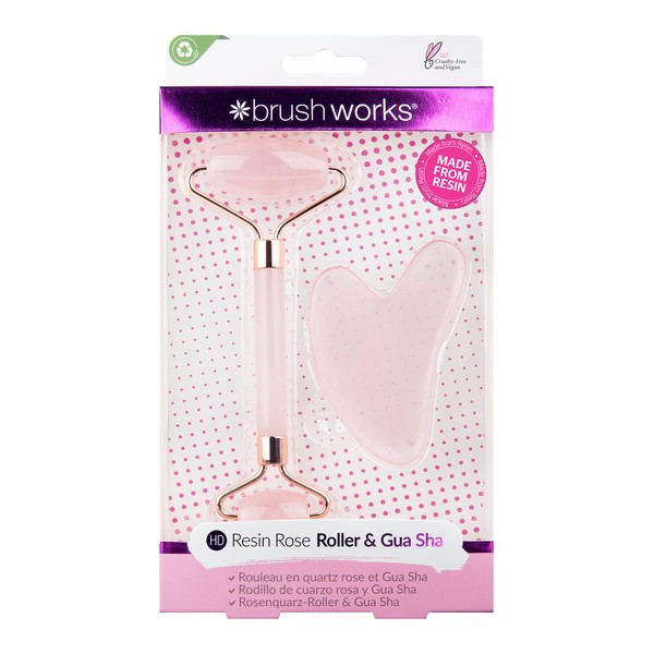 Brushworks Rose Quartz and Gua Sha 2 Piece Set, 70 g