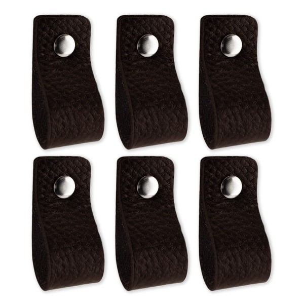 Brute Strength - Black Leather Cabinet Handles - 6 Pack - 12.5 x 2.5 cm - Kitchen, Bathroom, Dresser & More