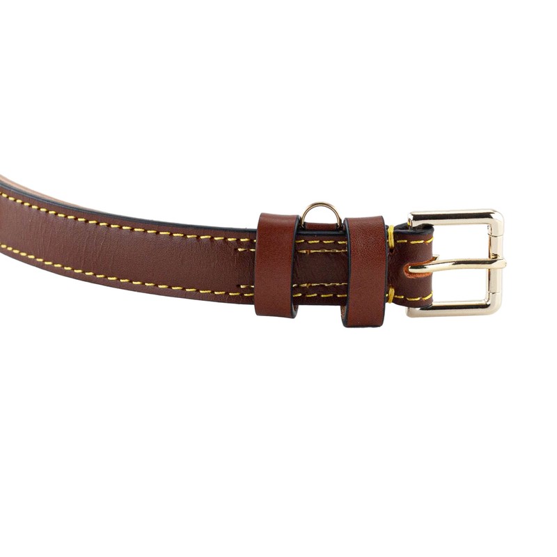 - Elegant and robust: the combination of leather with coloured stitching on the outside and soft padding on the inside makes the collar particularly elegant. The buckle and D-ring are made of solid brass material and painted to prevent rust and corrosion.