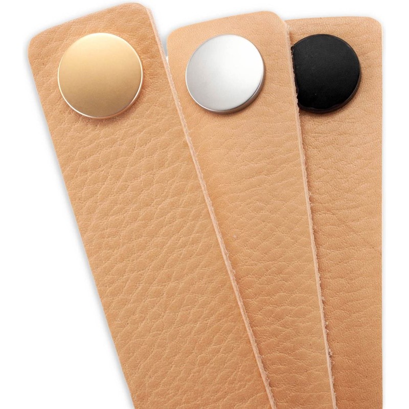 Turn standard furniture into designer furniture with leather handles! Leather handles are the must at this moment! Why buy a new piece of furniture when you can upgrade it with a designer leather handle? Create a vintage/industrial look in no time! They can be used as a leather loop and as a leather handle. Each handle comes with two special screws in 3 colors: black, silver and gold.