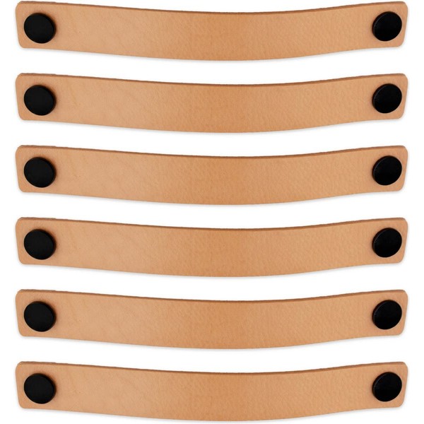 Brute Strength - Leather Handles for Furniture - Naturel - 6 Pieces - 25 x 3 cm - Cabinet Handle, Door Handle for Kitchen, Bathroom, Cabinets, Dresser, Wood