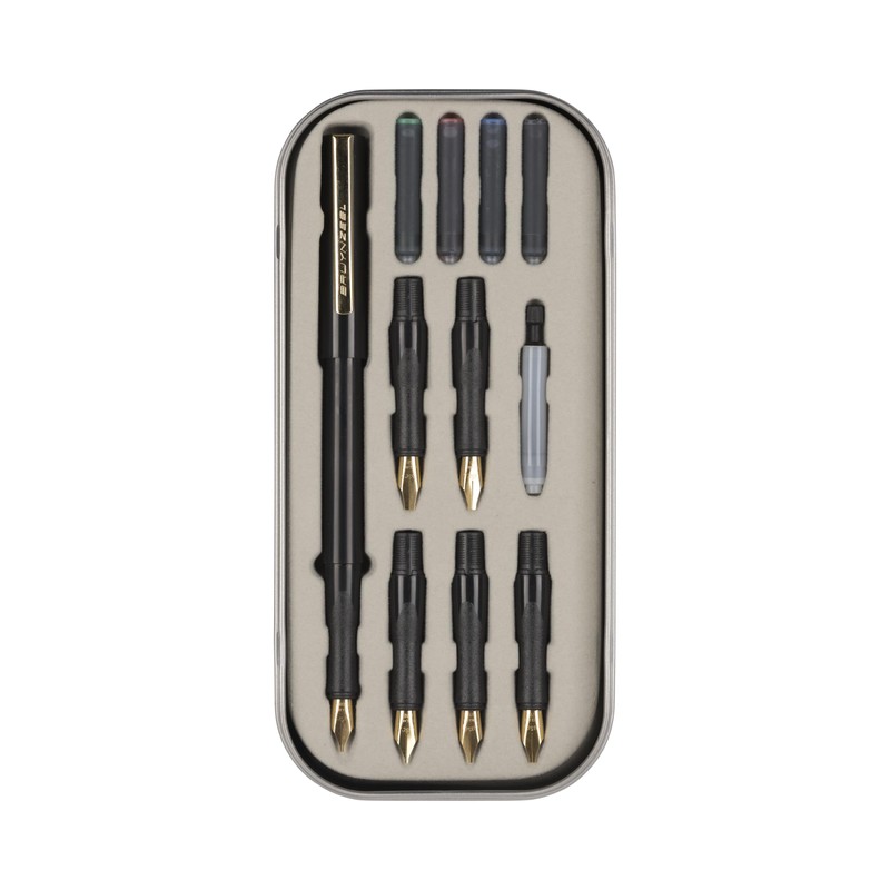 - Comprises six different brass pen points (fine, medium, broad, 2B, 3B and 4B), a converter, 4 colour ink cartridges and 4 caps.