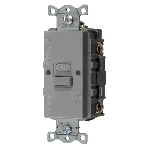 Bryant Electric GFBFST20GY 20 Amp 125V Commercial/Residential Self Test Faceless GFCI Receptacle, Gray