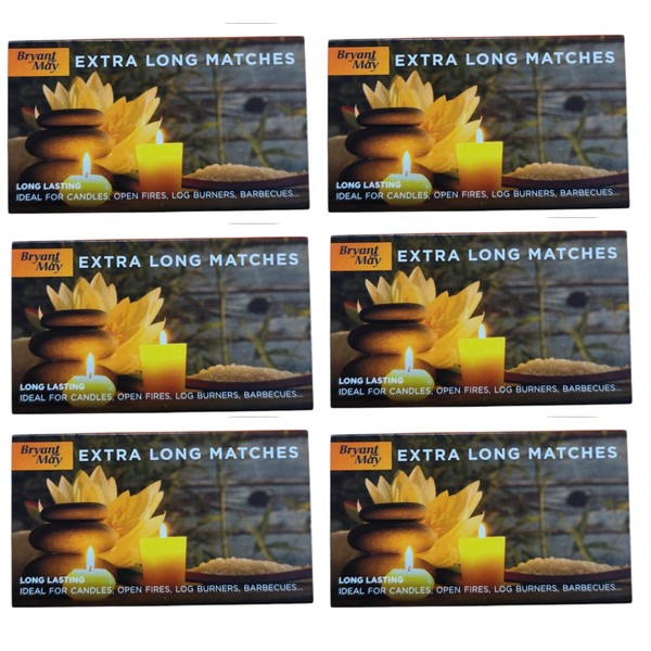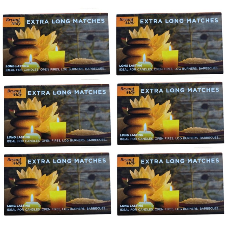 • QUANTITY: 6 boxes of Bryant & May Extra Long Safety Matches, 94mm in length, Perfect for Candles, Log Burners, BBQ's, Open Fires