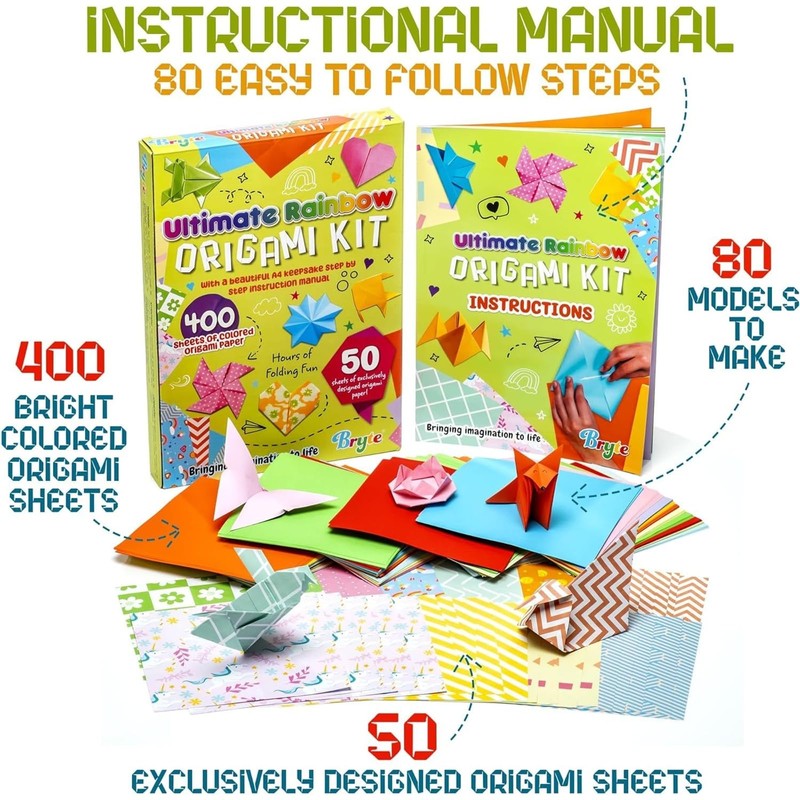 BRYTE Ultimate Rainbow Origami Kit | All-Inclusive Origami Kit for Kids Ages 8-12 with 450 Fun Origami Paper | Gift-Ready Crafts for Girls 8-12 Kit