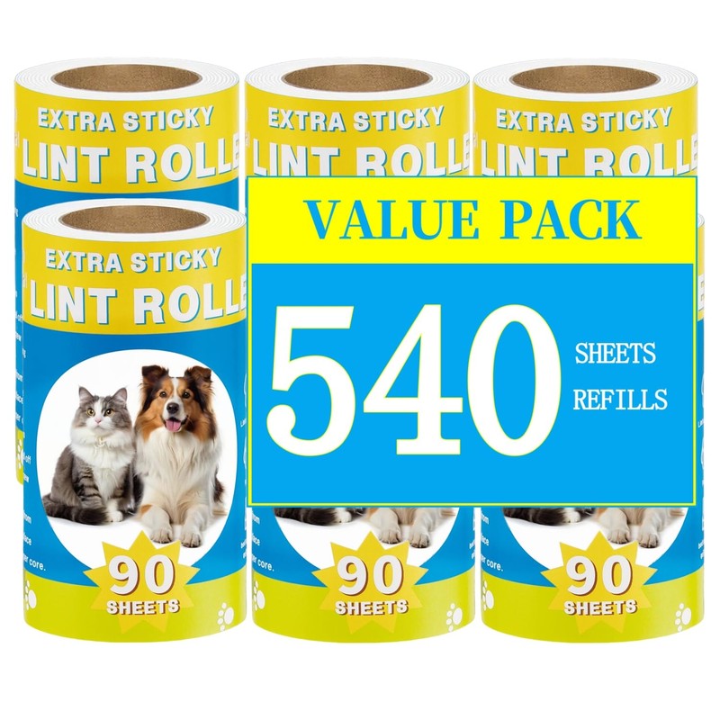 Bryzant Lint Roller Refills 540 Sheets Extra Sticky Fluff Roller Supplement Paper Core Suitable for Pet Hair Dust Removal Lint Rollers Replacement Core