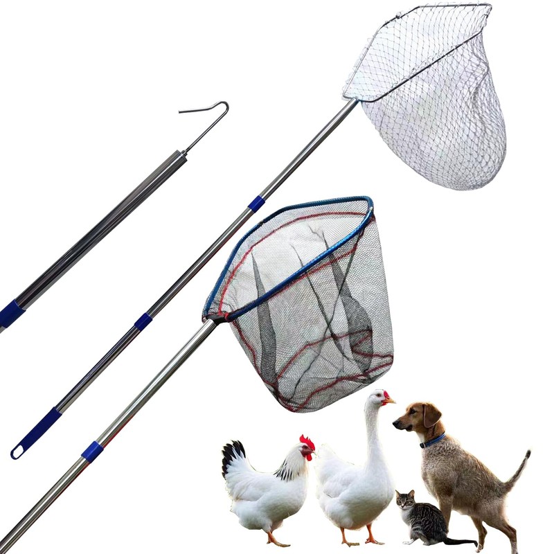 BRZFWLMYDF Stainless Steel Adjustable Chicken net Traps-Poultry catching nets, Fishing nets with Handles, Bird nets for Chicken coop, Chicken Traps with Handles, Fishing nets with Handles