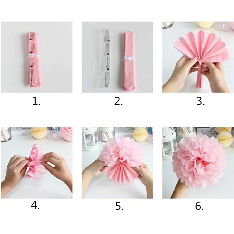 - Assemble: Paper flower balls is very easy to operate ,It is packed flat and what you need to do is to fluff it out, pre-cut and folded for easy assembly