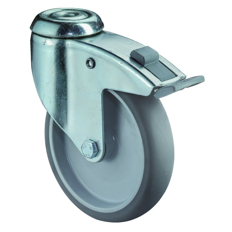 BS Wheels Heavy Rubber Castor with Brake for Hard Floors – Bolt Hole Castor with wheel – Blue/Grey, c121.a80.100