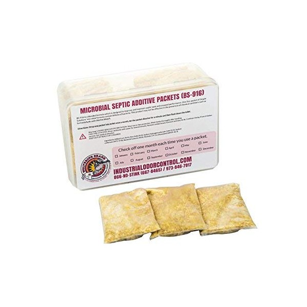BS916 Microbial Septic Treatment Easy Flush Live Bacteria Packets 1 Year Supply. Made in U.S.A