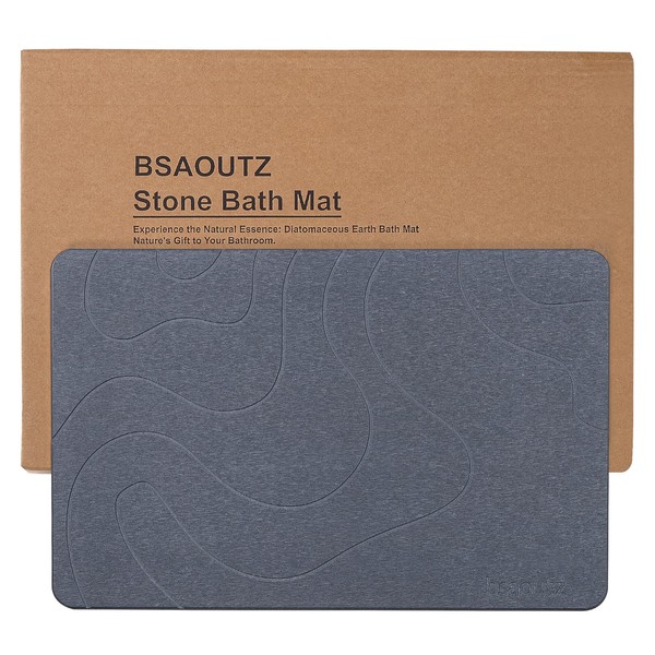 BSAOUTZ Stone Bath Mat, Natural Diatomaceous Earth Bathroom Rug, Super Absorbent, Quick Dry, Non-Slip Stone Mats for Bathroom, Kitchen, Entryway, Easy to Clean (Curve Dark Grey 1 Pack)