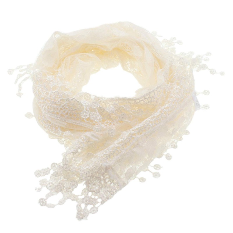 BSB AN Fashion Leafy Lace Scarf Womens With Tassels (66 inches x 8.5 inches + 2 inch tassel, Ivory)