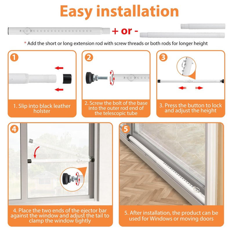 - Two in one : This sliding door security bar can be easily adjusted to an ideal width of 18 to 51 inch. It can be used as both a window security rod and a sliding door security bar. Suitable for various sliding windows and doors.