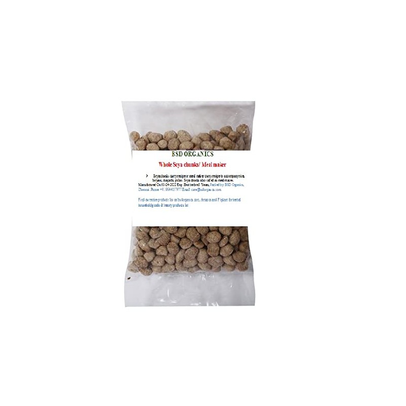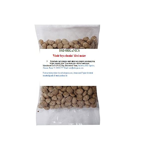 BSD Organics Whole Soya chunks/Meal maker/Soya Badi (500 Gram / 1.1 Pound)