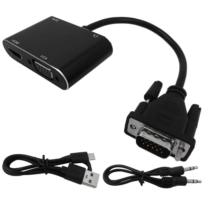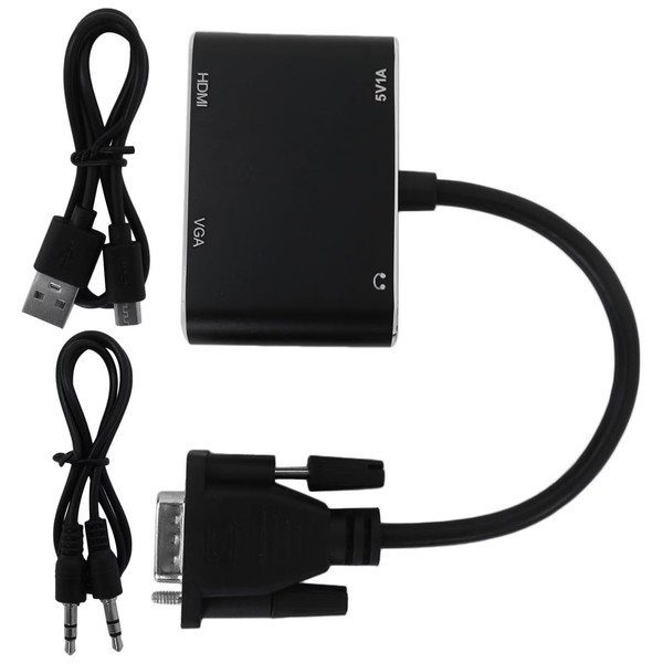 • 【Package Includes】 1x VGA to HDMI+VGA adapter; 1x micro USB to USB charging cable; 1x 3.5mm to 3.5mm audio cable.